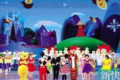 米奇、小熊维尼、狮子王等20多个迪士尼经典动漫形象,与美猴王、喜羊羊、灰太狼等国内动漫形象同台高歌,这不是迪士尼主题公园的嘉年华,而是6月1日晚央视六一儿童晚会上的一幕。今年晚会主题为《幸福像花儿一样》,以“花儿”为总体象征,以“幸福”为主体内容,尽情展现了在“和谐、团结、幸福”的孩子们幸福快乐的童年生活。