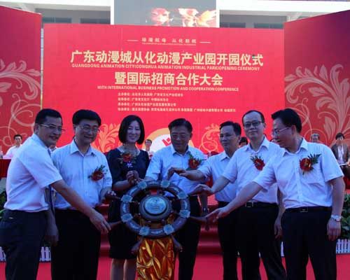 人民网从化6月21日电(记者杨洪)今天上午,坐落在广州从化市的广东动漫城彩旗飘扬,乐鼓阵阵,一派节日气氛。为期两天的“广东动漫城从化动漫产业园开园仪式暨国际招商合作大会”在这里举行。文化部、广东省政府、广州市政府等相关领导及来自海内外近20多个国家和地区的嘉宾、动漫企业共500多人参加了这次活动。
