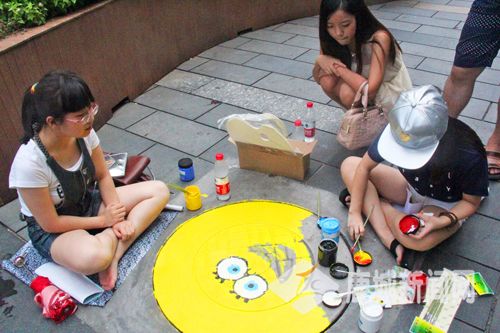 据悉,此次动漫彩绘行动由鹿城区委宣传部、区文明办、区城管与执法局、区广电新闻中心联合主办,将对该区主要道路上的公用设施,包括通讯箱体、变电箱、窨井盖、空白围墙以及旧住宅区的墙体等,以动漫彩绘的形式进行美化。自今年4月启动报名以来,吸引了120多名志愿者参加。作为此次活动的“重头戏”,五马街的“井盖涂鸦”率先登场。记者在现场看到,不少志愿者正顶着烈日进行“创作”,除了经典漫画形象外,一些自行创作设计的字体和抽象画等也成了不少志愿者的“创意来源”。全程参与此次活动的绘迹光年动漫艺术馆负责人吴励志告诉记者,除了井盖涂鸦外,他们还突发奇想,采用了“俄罗斯方块”的创意对街道上的格子道路进行涂鸦,吸引了不少市民参与。