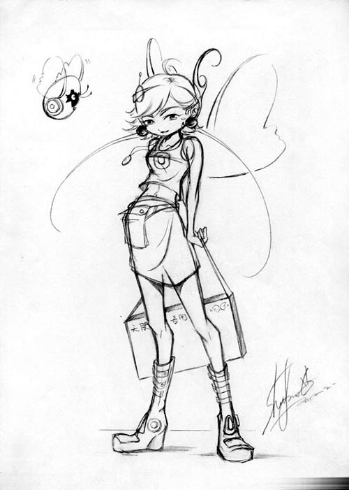 | 夸张而又不会过火~可爱啊~~~不过手的比例有些不对路!动作有劲有力,有好好的表现力!!设计大胆创新。加油吧!! |